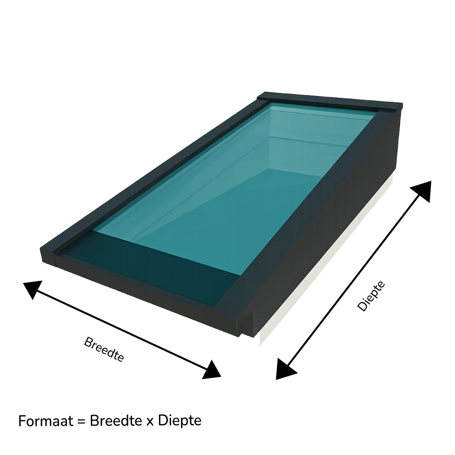 Let op: de genoemde afmetingen zijn de netto dagmaat. Dit is het formaat van de sparing (het gat in het dak) én de binnenmaat van de lichtstraat.